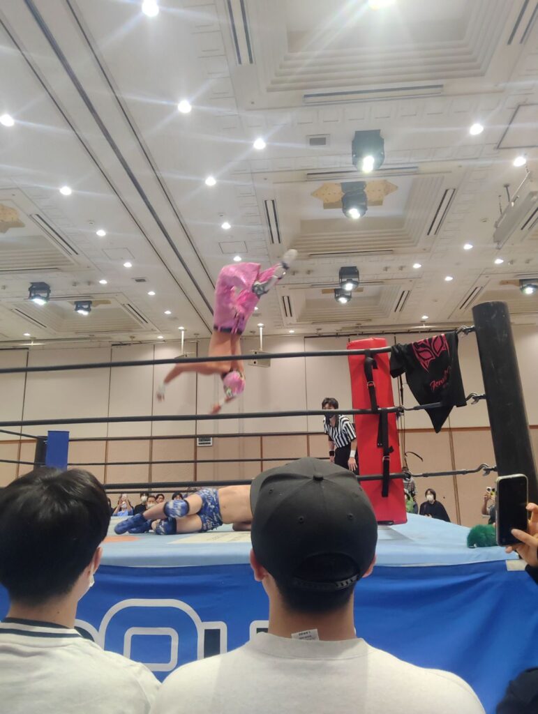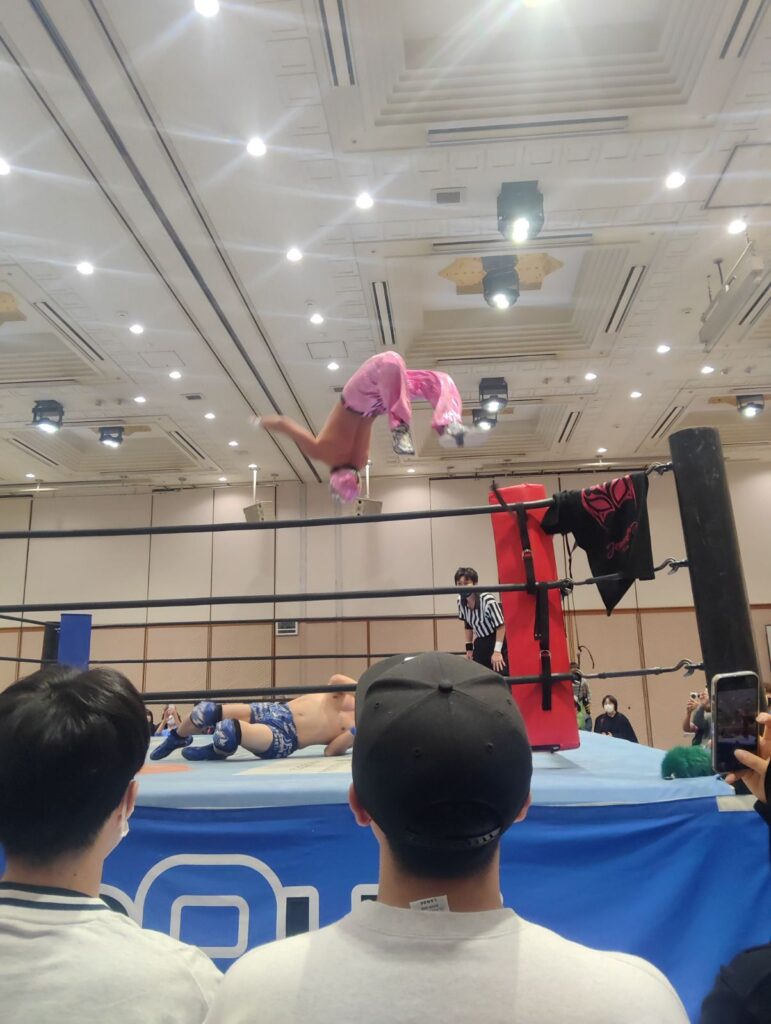 プロレスといえば、迫力満点の技の応酬。目の前で繰り広げられる「場外乱闘」には、思わずドキドキして身を乗り出してしまいました。選手の息遣いや衝撃音がダイレクトに伝わってきて、わくわくが止まらず、時間はあっという間に過ぎていきました。